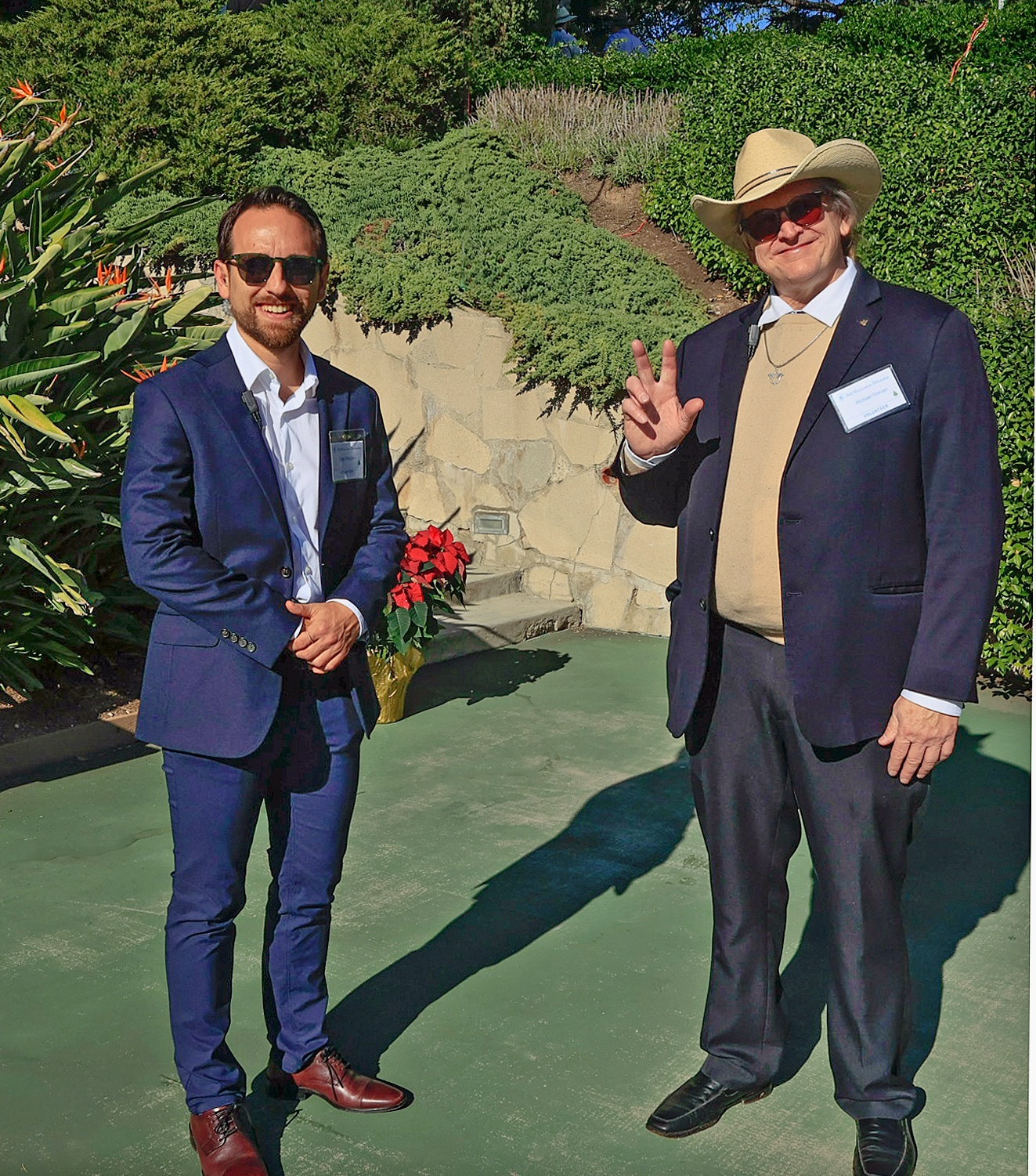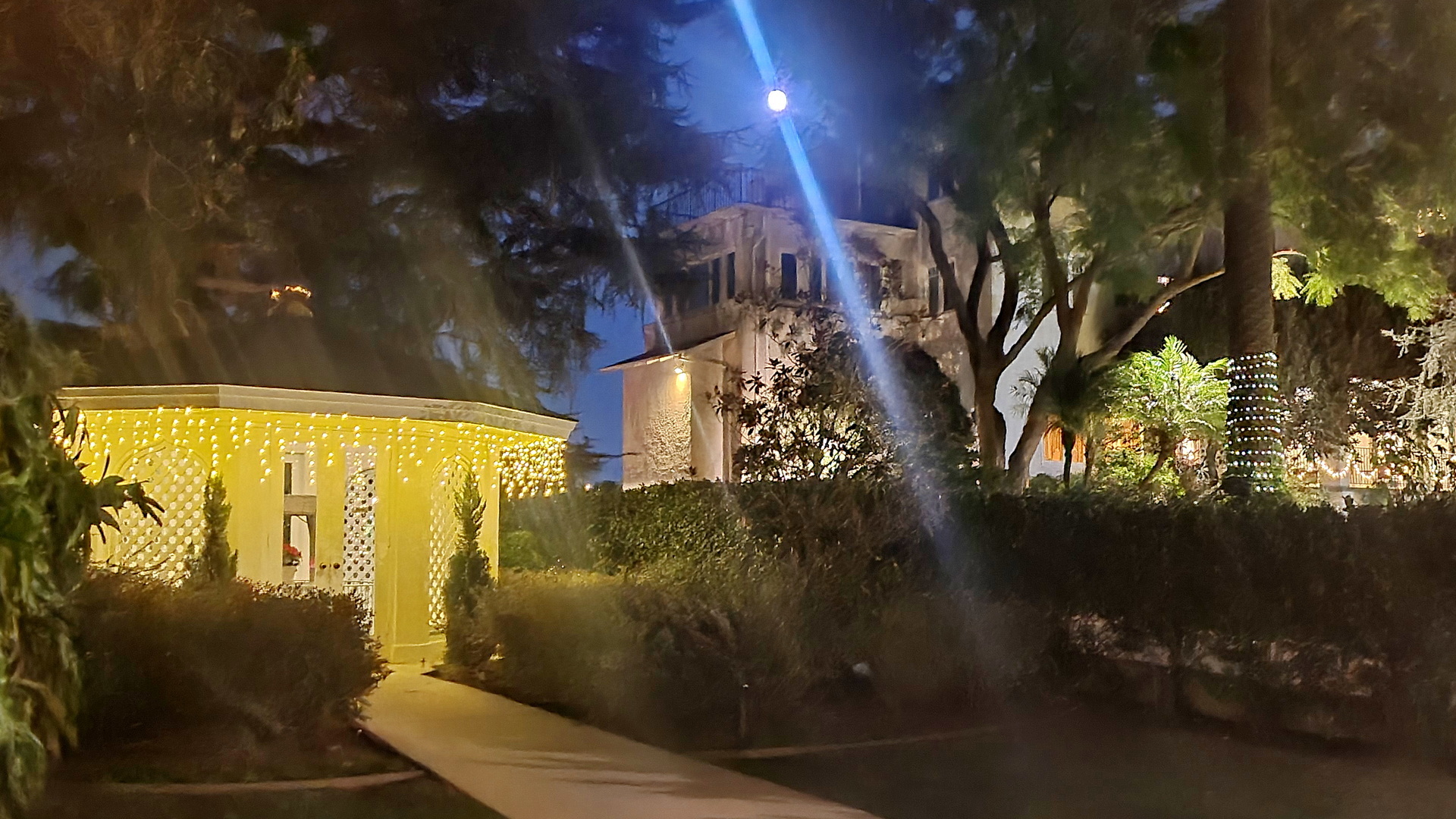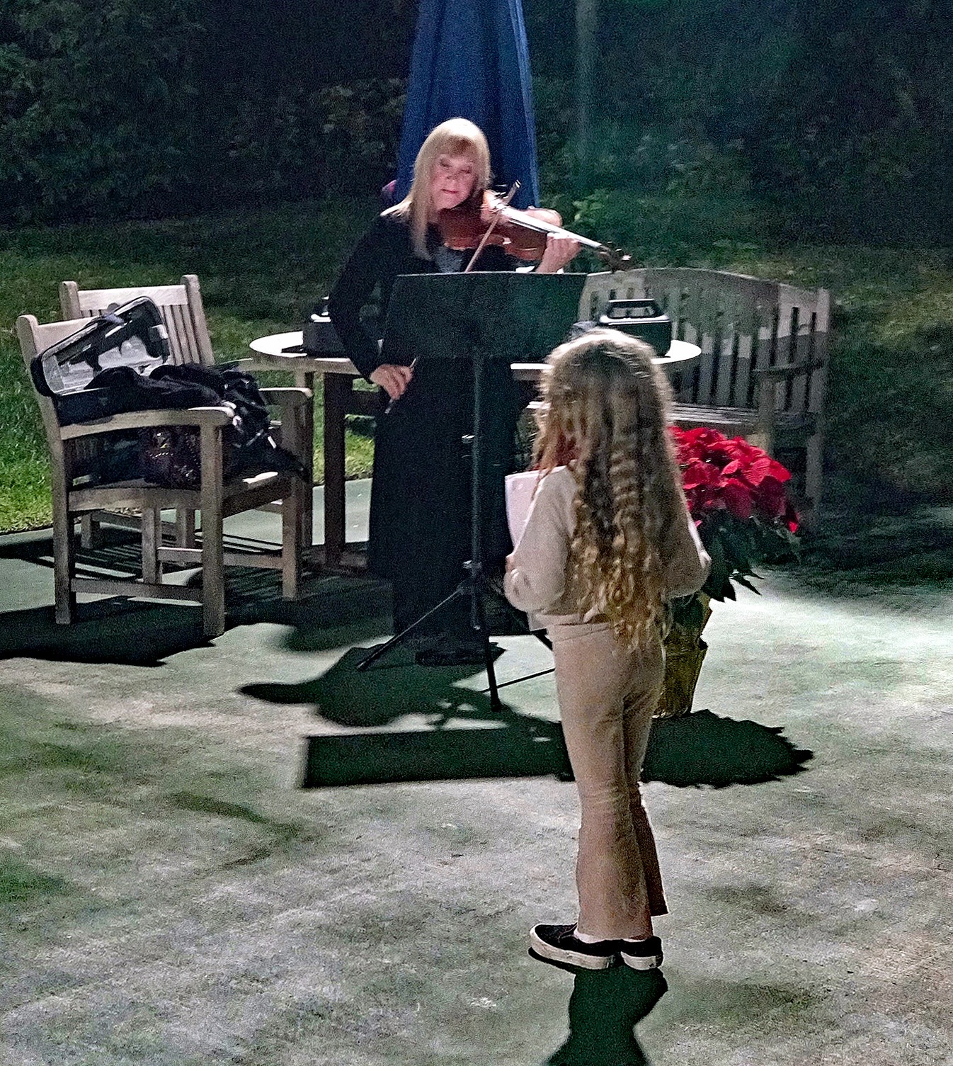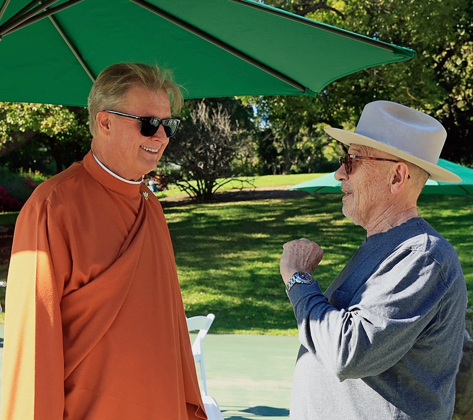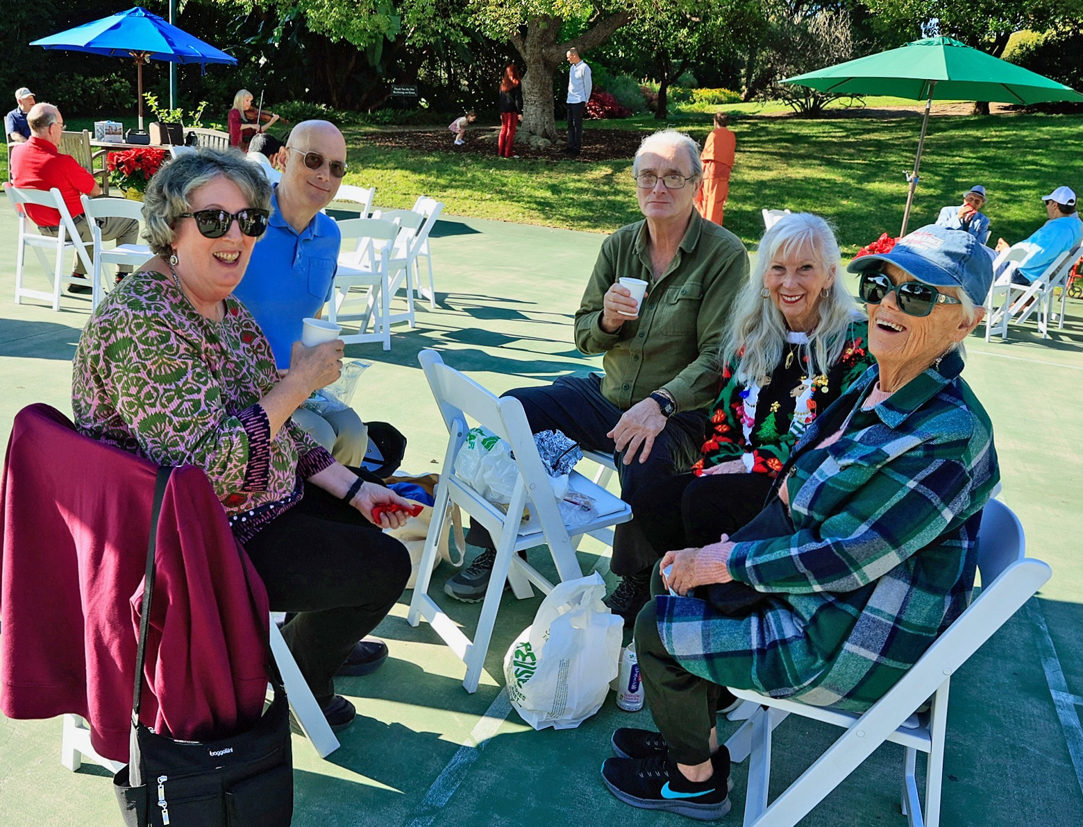 Held on Friday evening, December 5, the festive event drew more than 240 neighbors to the Mother Center, where they were greeted by SRF monks and nuns. Visitors were able to view the many unique decorations in the Reception Hall of the main building and enjoy visits with Santa Claus and his elf under a decorated tent on the tennis court, where refreshments were offered and carolers uplifted the gathering with Christmas cheer. It was a special joy to share the universal spirit of Christmas with our neighbors.