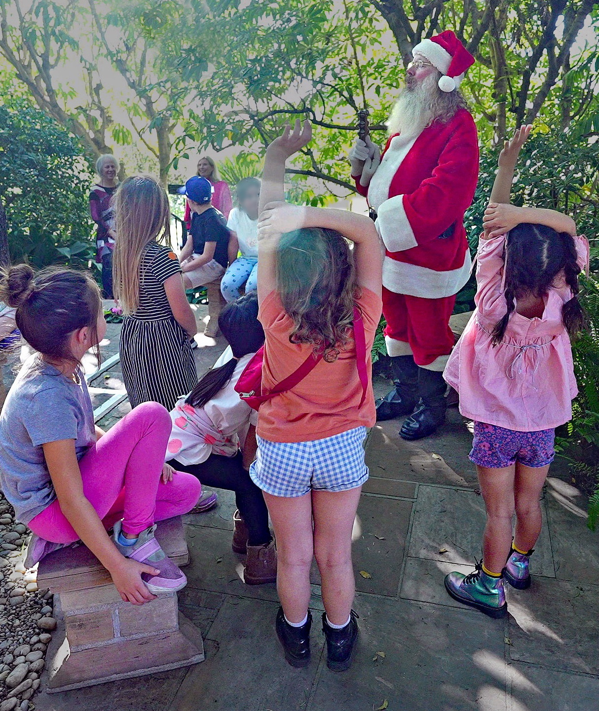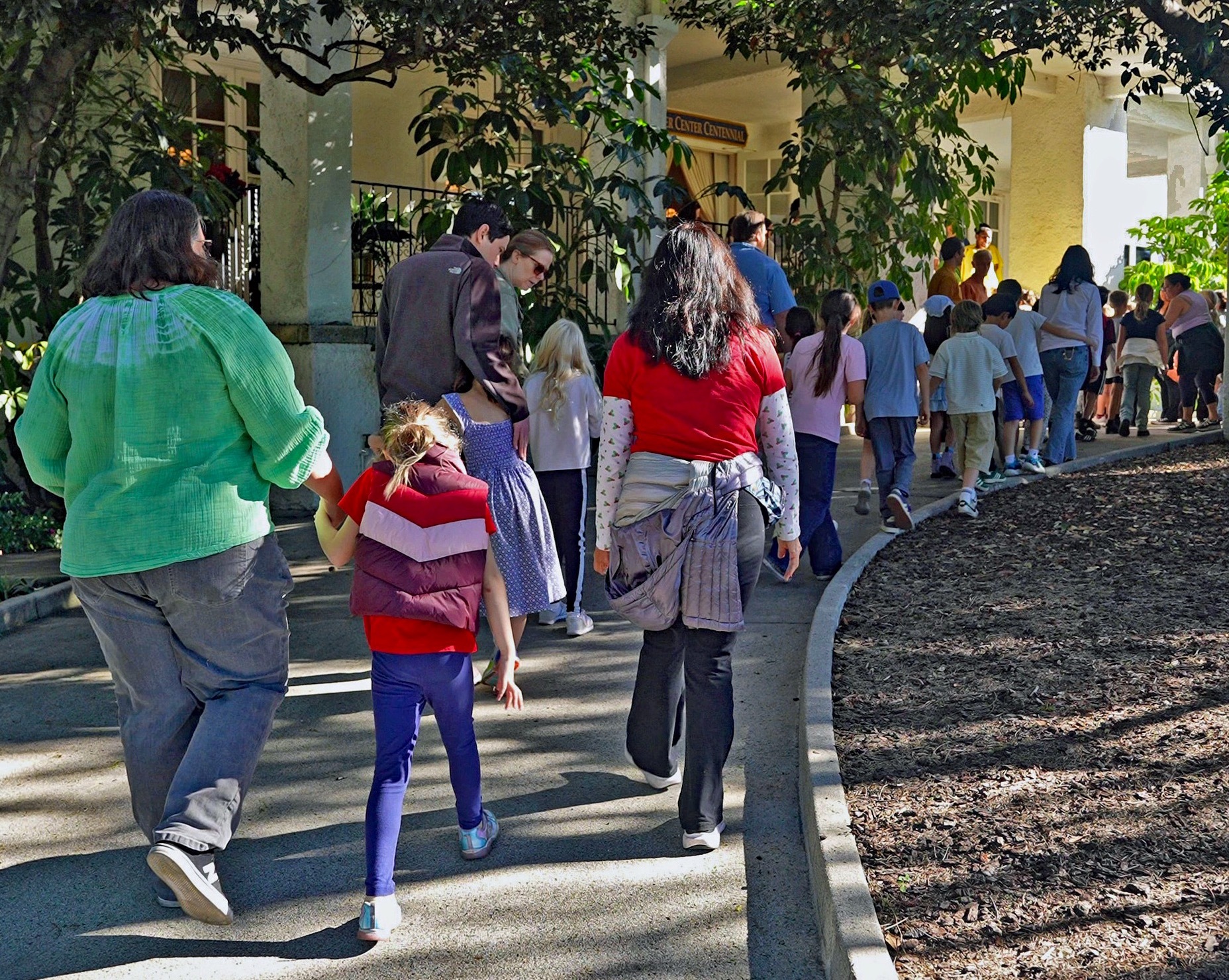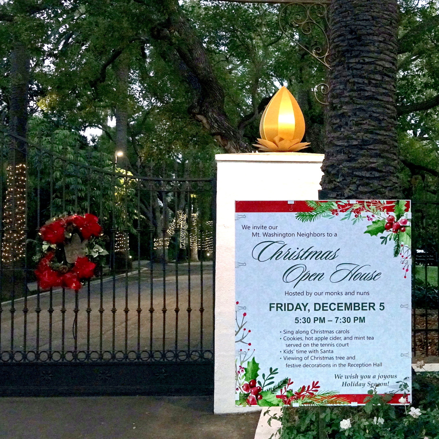 Then on Wednesday, December 10, 50 second graders from the nearby Mt. Washington Elementary School — along with their teachers and volunteer parents — were hosted by monks and nuns for a special tour of the Christmas decorations and caroling inside the main building, as well as exploring the gardens and meeting with Santa Claus on the tennis court.