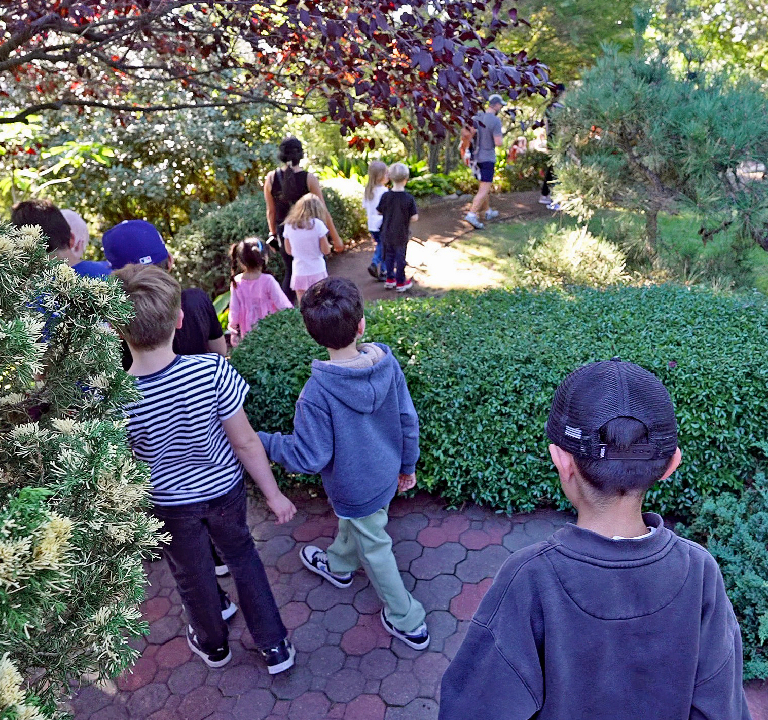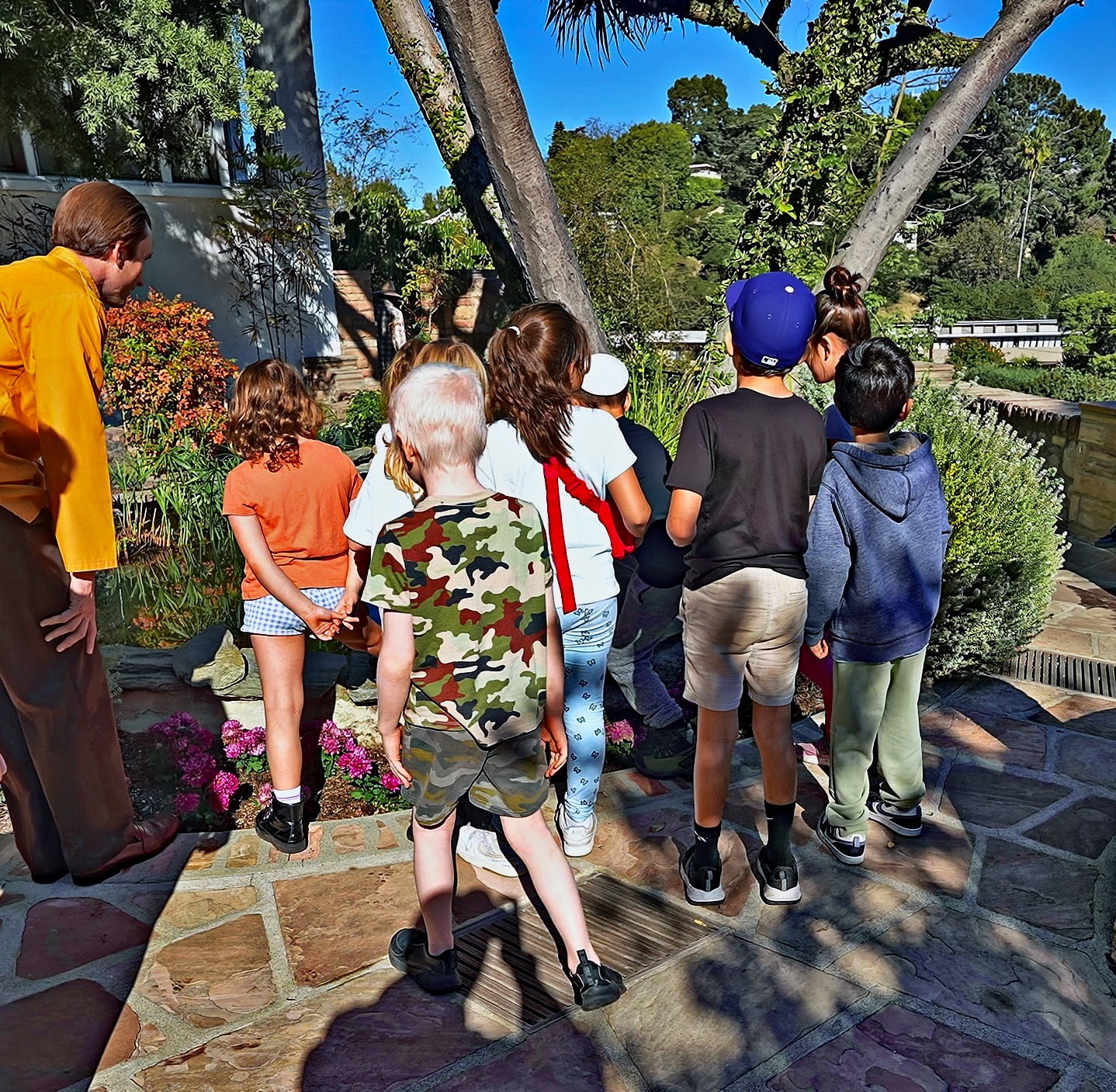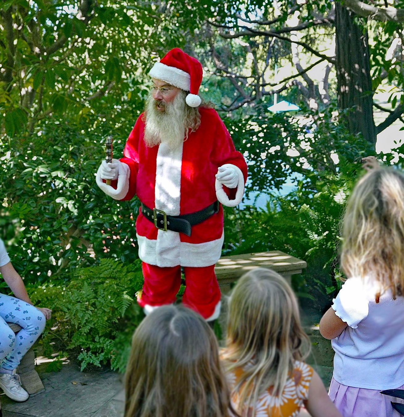 Then on Wednesday, December 10, 50 second graders from the nearby Mt. Washington Elementary School — along with their teachers and volunteer parents — were hosted by monks and nuns for a special tour of the Christmas decorations and caroling inside the main building, as well as exploring the gardens and meeting with Santa Claus on the tennis court.