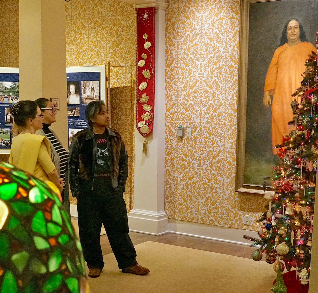 The Christmas Open House took place December 5 – 7 this year. SRF monks and nuns welcomed members and friends who came from all over California, Arizona, and beyond to enjoy fellowship and refreshment, view the lovely decorations adorning the glittering Christmas tree, meditate in the chapel where Paramahansaji led many meditations and classes, and hear caroling led by singers from one of the local SRF temples. A highlight each year is the special opportunity to visit Paramahansaji’s living quarters, now preserved as shrine rooms in the International Headquarters Building.