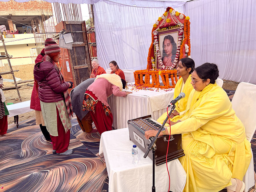 SRF sannyasinis Sisters Ranjana and Yogamayee shared inspiring anecdotes from Paramahansa Yogananda’s childhood days in Gorakhpur during the first eight years of his life. Swami Vishwananda then offered these words from Sri Daya Mata, former president and sanghamata (“mother of the society”) of Paramahanasaji’s worldwide YSS/SRF organization for more than 50 years: