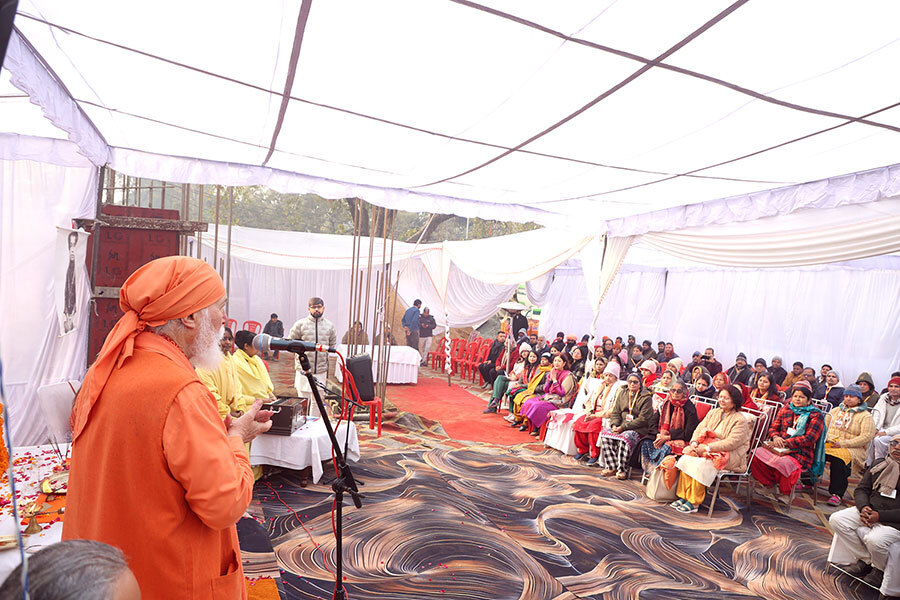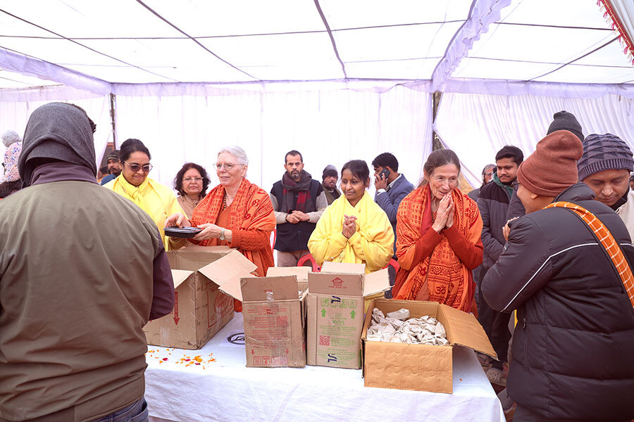 Monastics from SRF and YSS participated in the program. They included Swami (Brother) Vishwananda, vice president of SRF and member of the boards of SRF and YSS; and four SRF nuns currently on pilgrimage to Paramahansaji’s homeland, sannyasinis Sisters Ranjana and Yogamayee, and Brahmacharinis Prianca and Smita. They were joined by YSS devotees and friends from across the state of Uttar Pradesh.