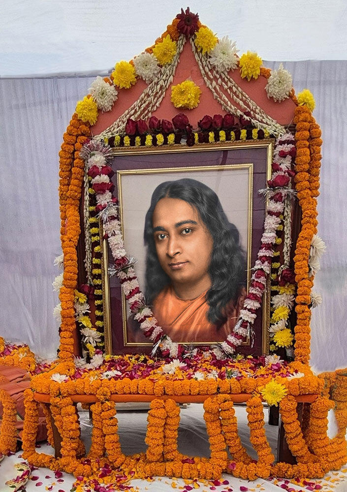 Paramahansa Yogananda’s picture, beautifully decorated, on the palanquin.