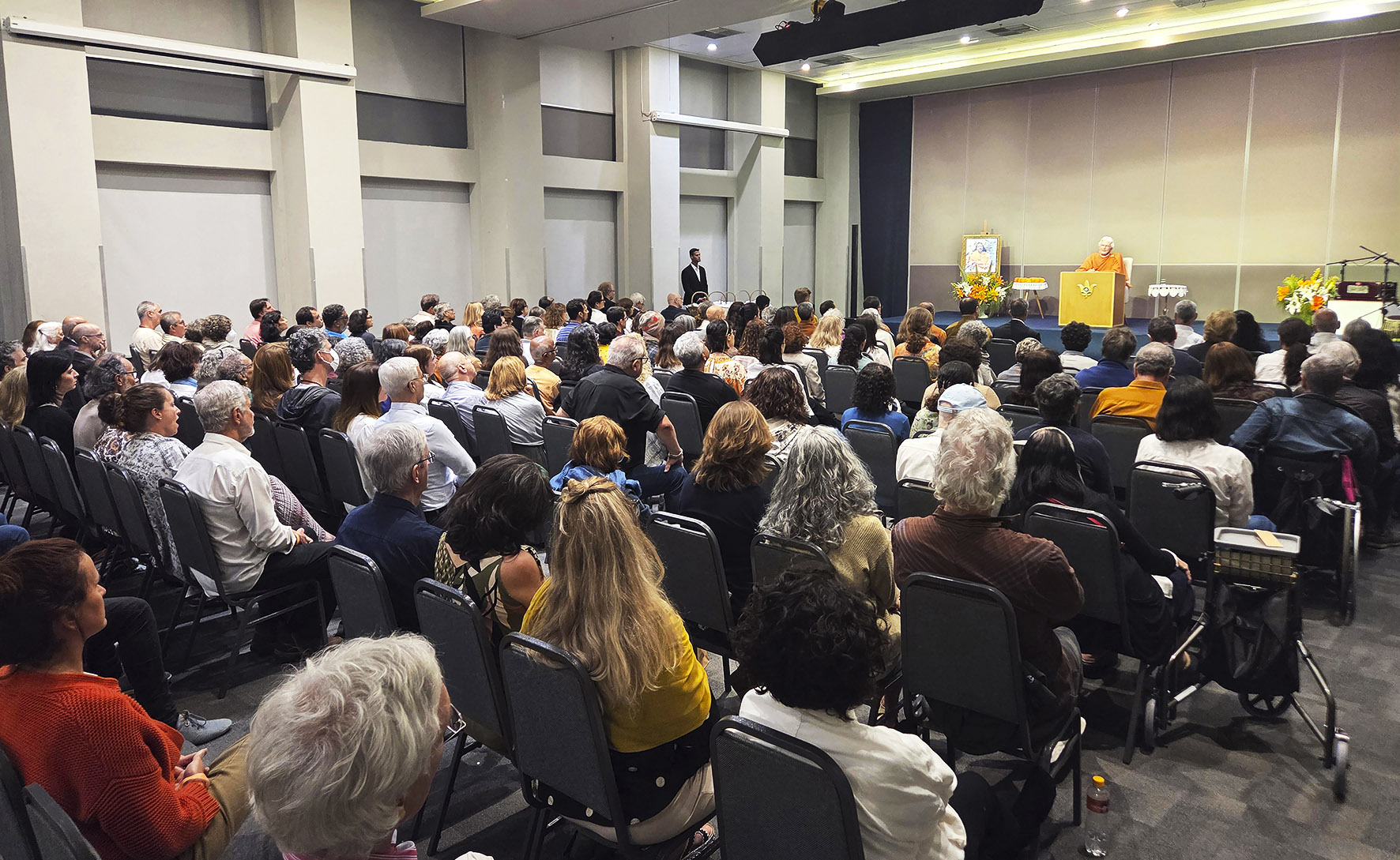 Brother Chidananda next visited SRF members in São Paulo. On Friday, October 10, he met with the Managing Council and volunteers serving at the the SRF São Paulo Center. The public events on Saturday and Sunday were held in a major venue in the city.